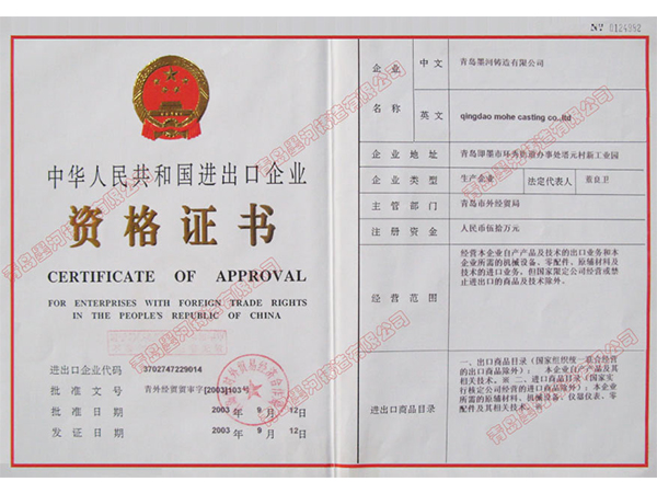 青島墨河鑄造有限公司 聯(lián)系人:董照 電話:13953213469(微信同號) 座機:0532-87566543 郵箱:mohe@moher.cn QQ:1678294021 地址:青島即墨市泰山一路南端186號